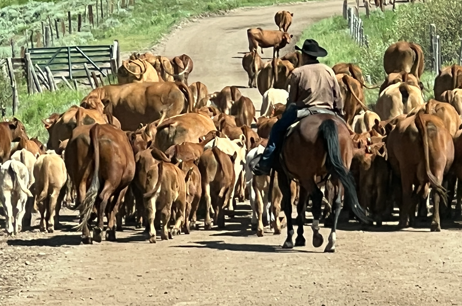 As the cattle moved along the road we got back in our vehicles and followed. Now the Jeep needs to be washed!